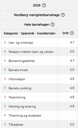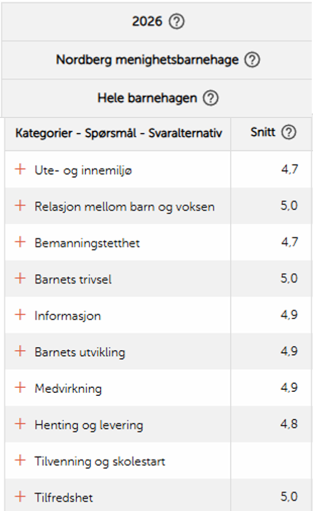 Resultatene for foreldreundersøkelse 2026 er kommet! Det gleder oss spesielt at vi scorer i toppen på dimensjonene som gjelder generell tilfredshet, barnets trivsel, relasjonen mellom barn og voksen! Under har dere oversikt over tallene fra årets undersøkelse!